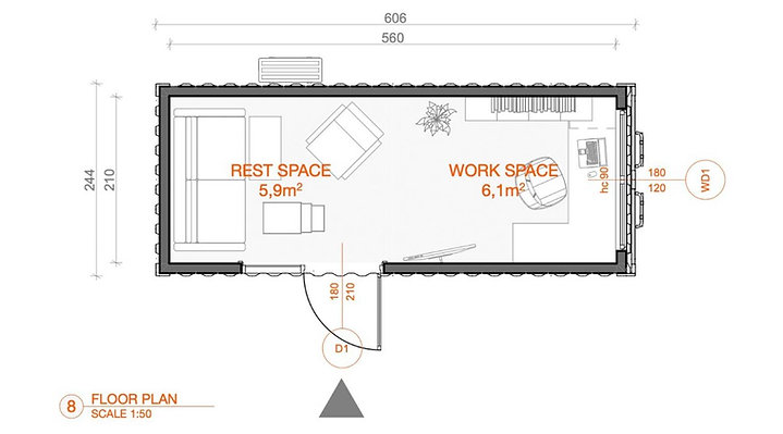 Le bureau conteneur de 15 m² est un espace de travail flexible et mobile, conçu pour être installé dans divers environnements : bureau à domicile, bureau sur un chantier ou espace de travail temporaire. Ce bureau est fabriqué à partir d’un conteneur maritime de 20 pieds (6,1 m de longueur) et est proposé comme une solution « clé en main », prêt à l’emploi dès sa livraison.